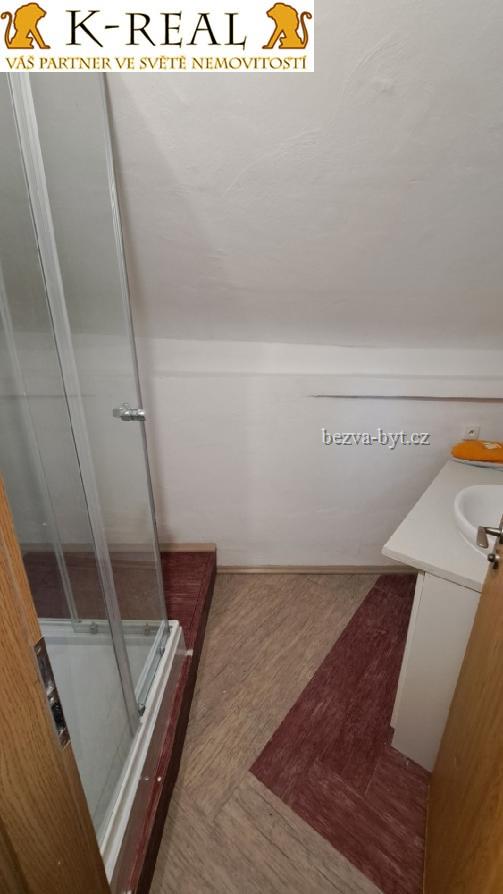 Pronajmeme byt v RD bez majitele o velikosti 1+kk. Roštín, okr. Kroměříž, Zlínský kraj, ČR. Jedná se o standardní byt a nachází se v prvním patře (přístup po schodem). Jedná se o půdní byt. Střešní okna. Koupelna se sprchovým koutem, přívodem na pračku, WC a umyvadlem, kuchyňský kout oddělený od obývací části bytu. Na chodbě police a v přízemí k dispozici skříň. Byt je vybavený. Celková plocha bytu je 30 m2. Byt má samostatný přístup bokem domu. Dům sám je pod nejvyšším kopcem hor Chřibů, pod Brdem. Tedy nádherná příroda. Hluboké lesy za domem. Byt má parkovací místo. Dům má levné ekologické topení. Internet v ceně. Byt je volný ihned. Zvíře ano. Občanská a sociální vybavenost v místě. Spojení autobus. V blízkosti Kroměříže, Koryčan, Uherského Hradiště i relativně Brna. CENA: 12.500 Kč měsíčně celkem (z toho nájem 9.500 Kč + zálohy na energie 3.000 Kč) + provize RK. Bez vratné kauce. Kontakt K-REAL tel. 602 778 256